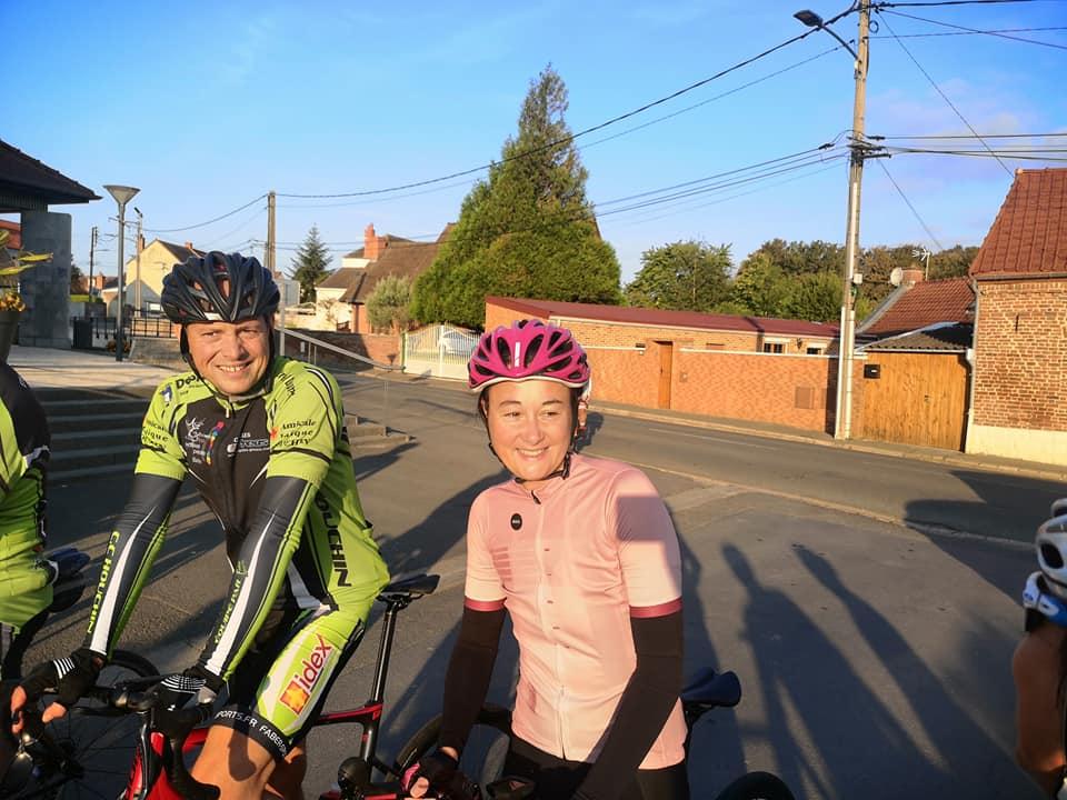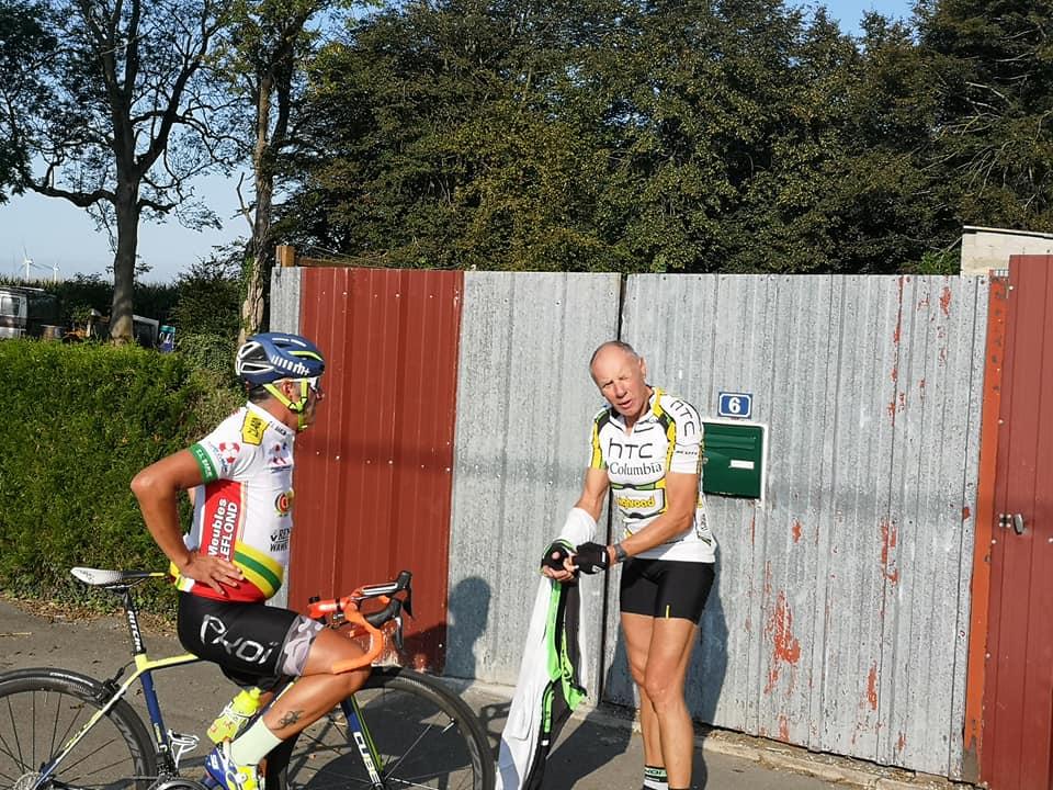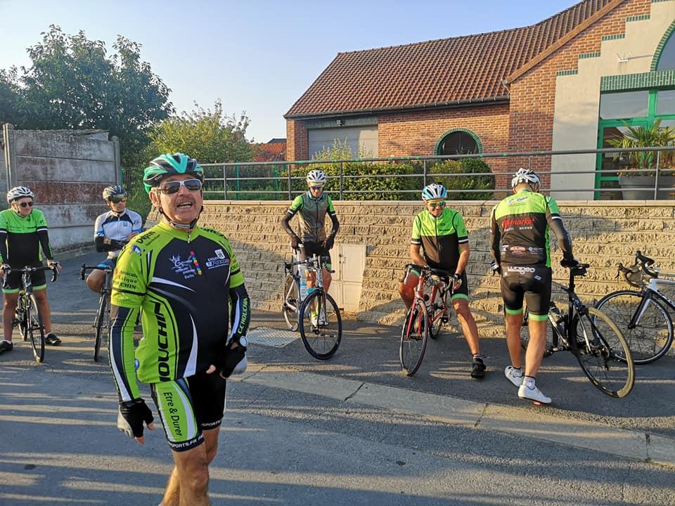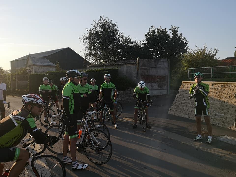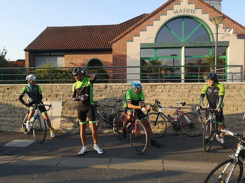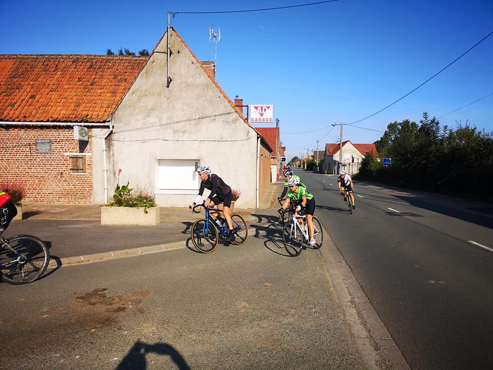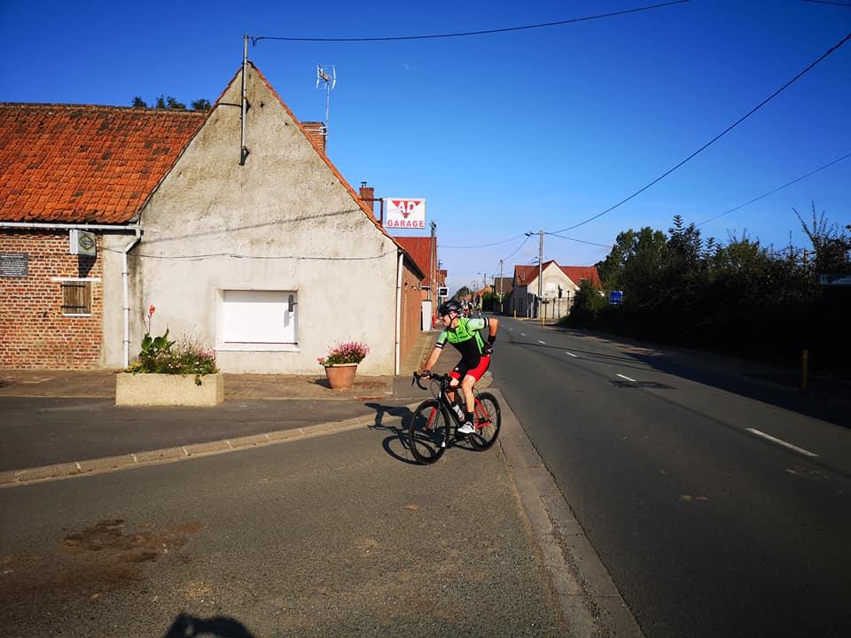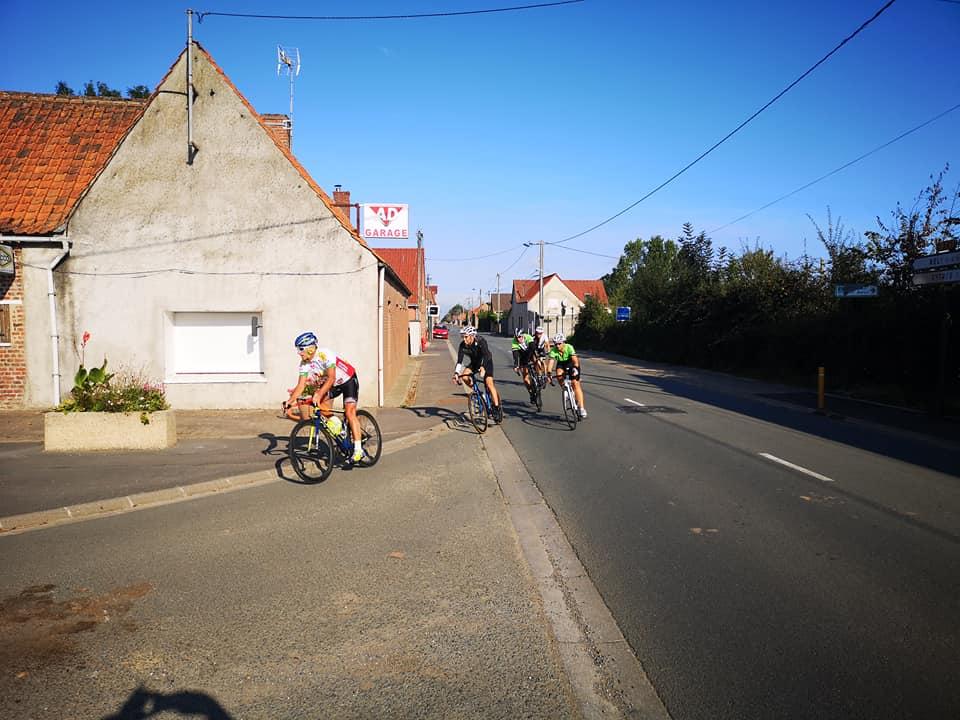 Dominique G habillé comme en automne en profite pour enlever sa veste.Nous quittons ensuite la chaussée brunehaut pour nous diriger vers lieres puis la bosse d 'ecquedeques pour filer ensuite vers saint hilaire cottes (et sa petite côte) ,ham en artois puis lillers à vive allure.. A lillers nous quittons nos camarades pour rentrer directement par marles.Au total 93 km à 29 de moyenne
