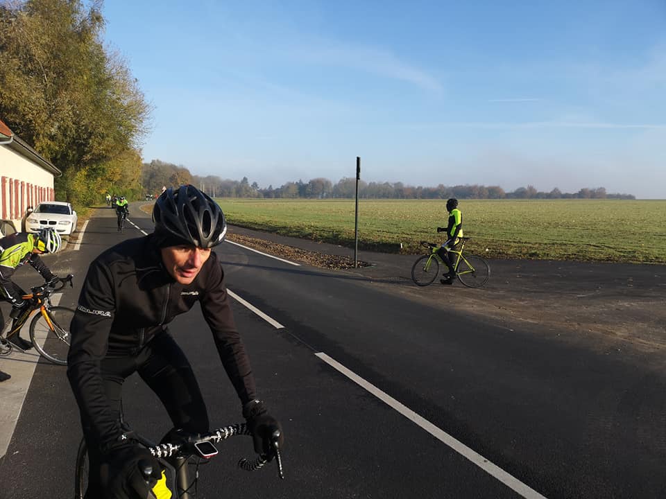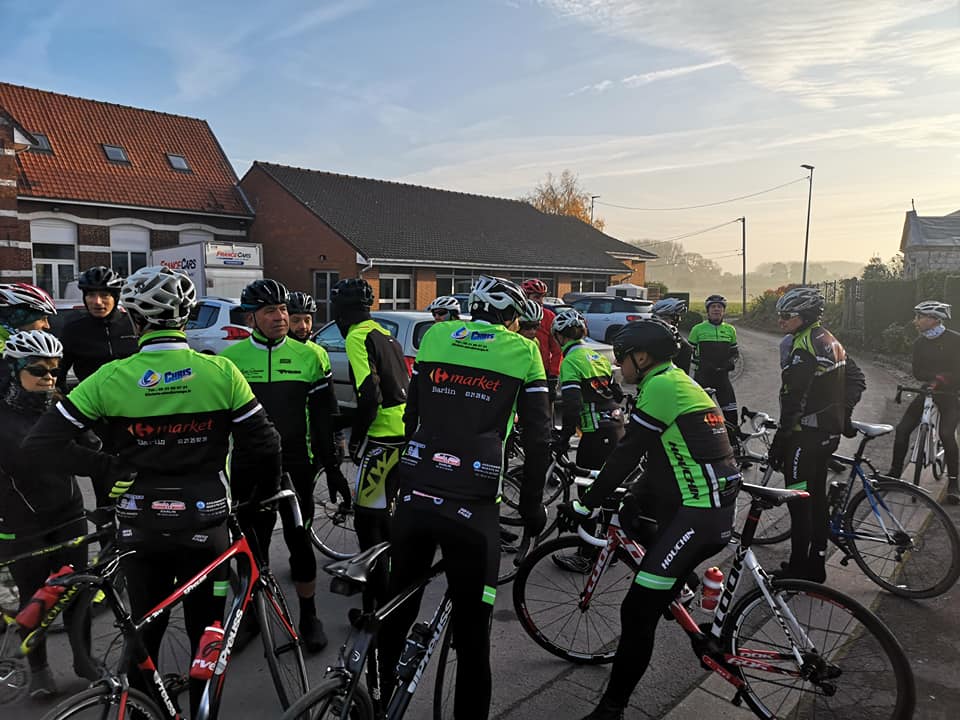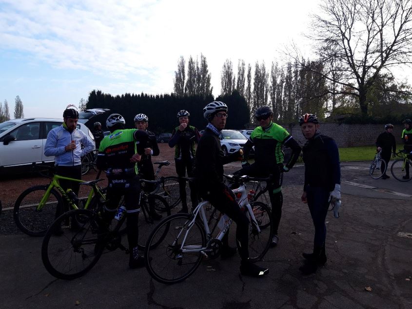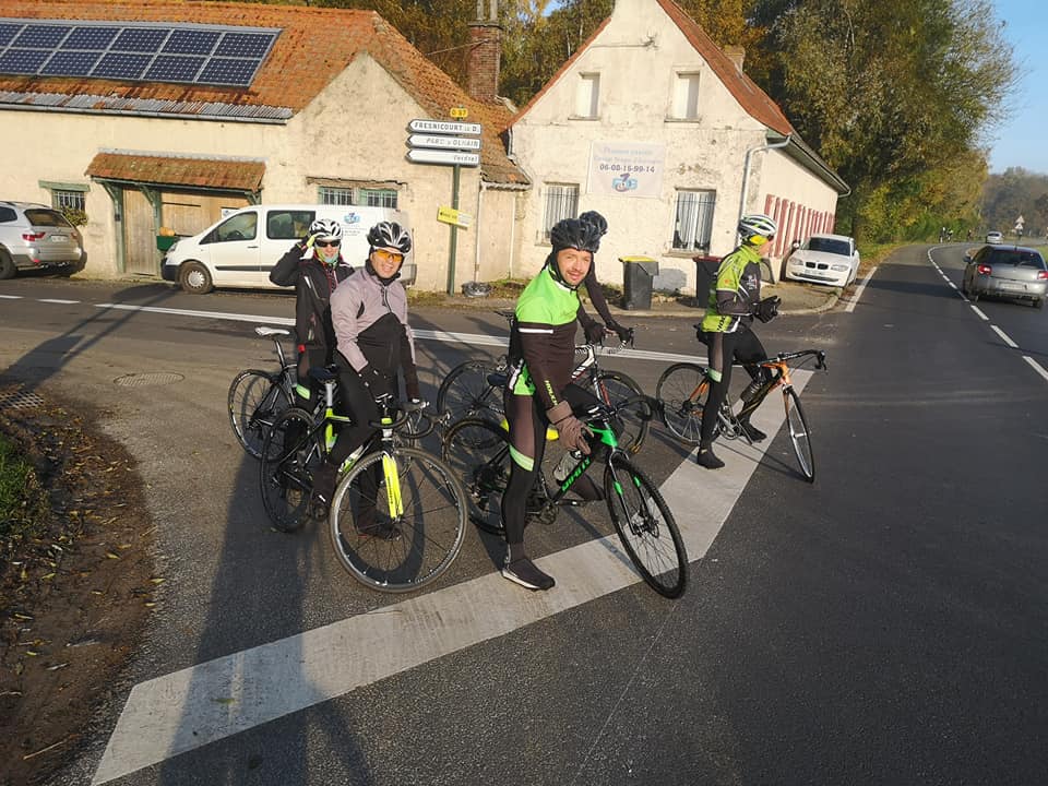 sortie fraiche mais ensoleillée ce dimanche matin .Un beau parcours de prés de 80km tracé par olivierdu côté d"aubigny,penin,tincques,la comté.Les fouquart étaient en vue ce matin pour tracter et guider le peloton,fabien le fils également dans le rôle d 'équipier modèle pour nathalie avec de nombreuses poussettes pour aider nathalie.